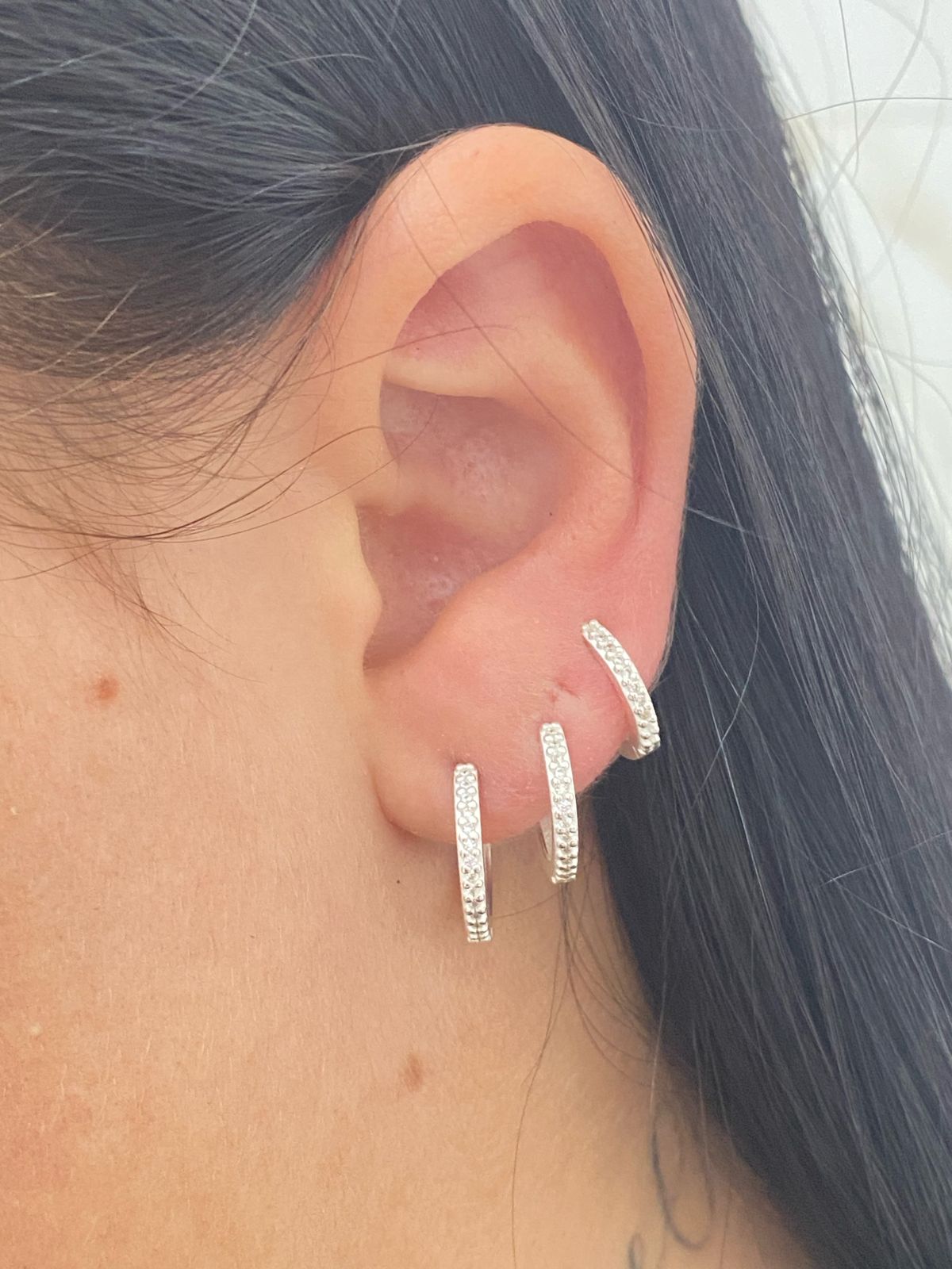 Adorne-se com sofisticação e brilho com estes brincos de argola em prata 925, adornados com uma linha de pedrinhas brancas. Seu design elegante e atemporal complementa qualquer visual, adicionando um toque de glamour e luz ao seu rosto.